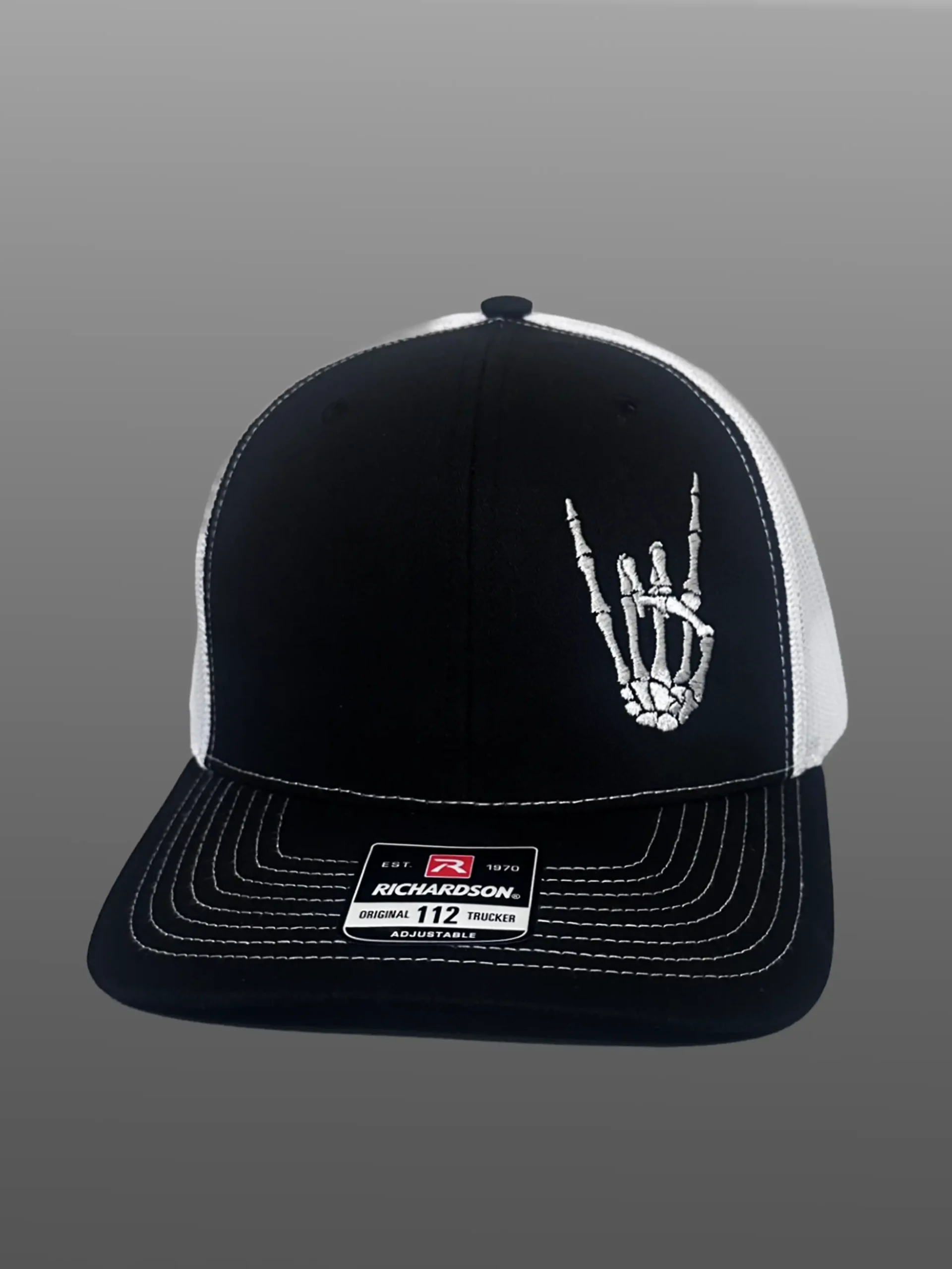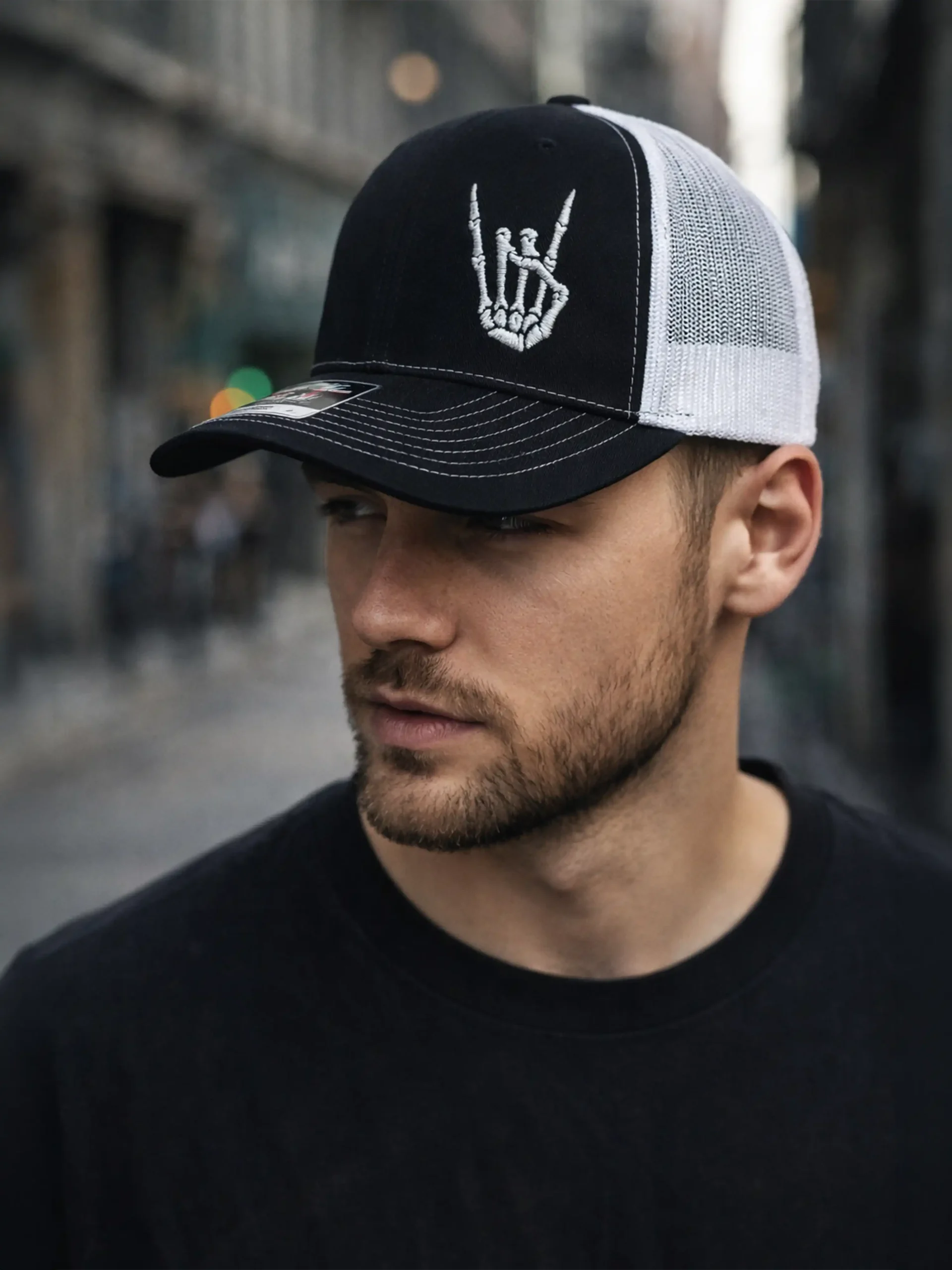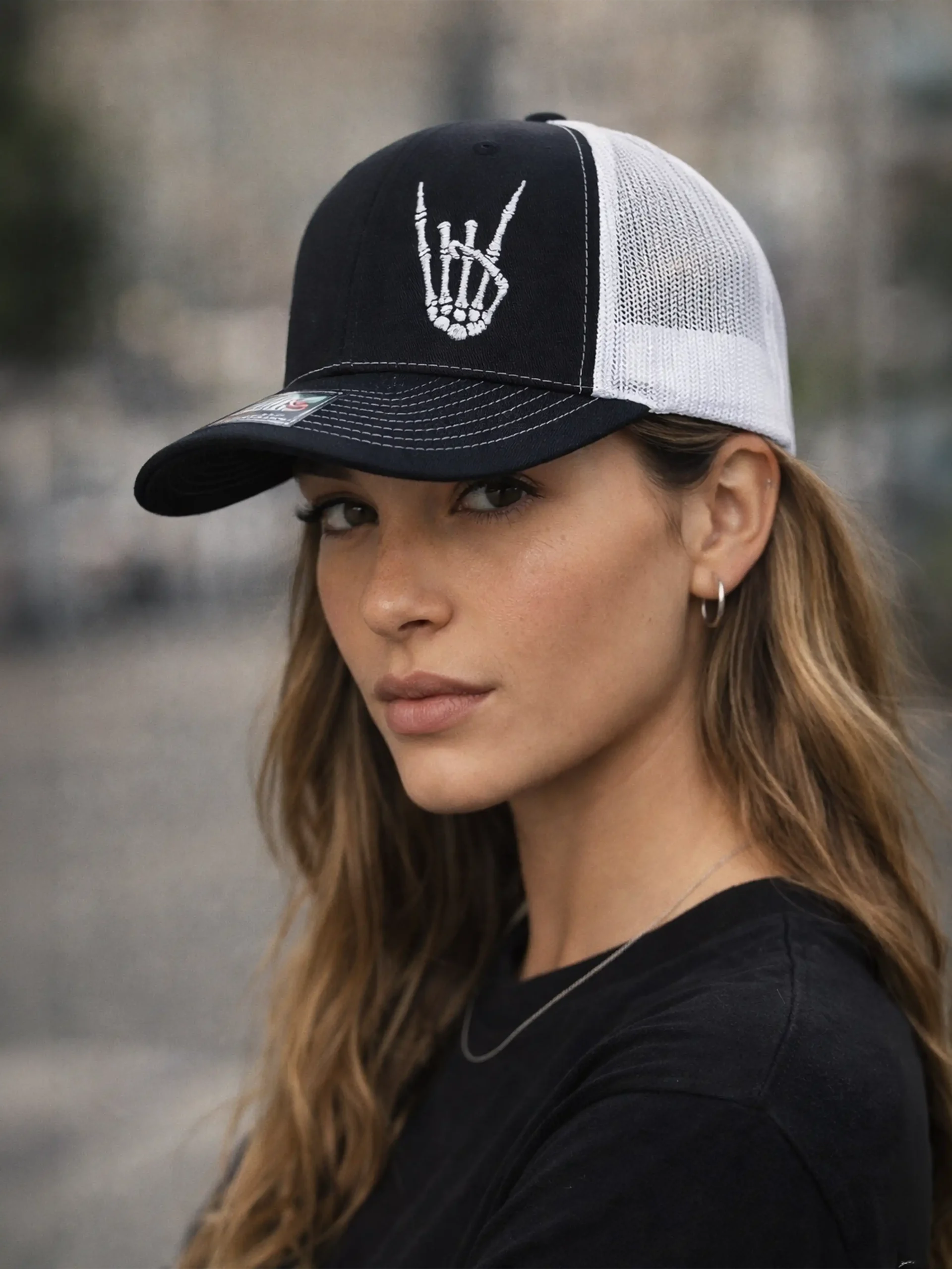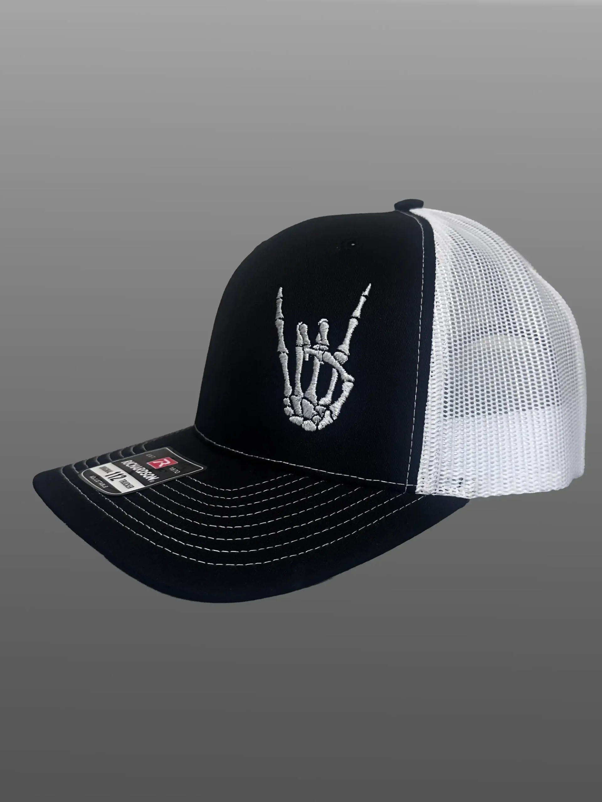 🔥 Black & White Trucker Hat with Rocker Hand Style